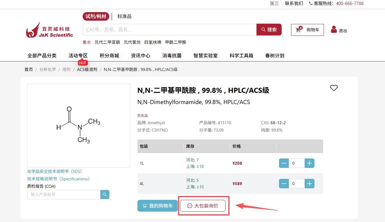 如果您有大包装询报价需求,可以点击产品详情页面的大包装询价按钮,流程如下: