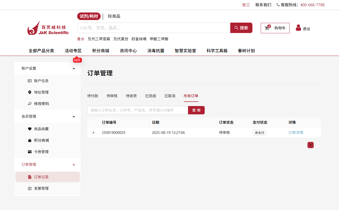 想了解您在百灵威的订单情况?只需按如下步骤进行操作即可查询。
