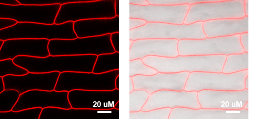 For instance, FM 1-43 and FM 4-64 can be used for highly specific imaging of membrane structure of plant cells, including HD imaging of cell membranes of onion (FIG. 1-2), tobacco (FIG. 3-4), rice, Arabidopsis and other plants, such as root tip cells and leaf epidermis cells.