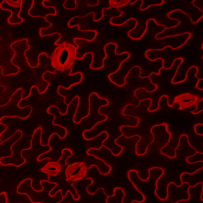 Fig. 3. Confocal laser imaging of epidermal cells and guard cells of tobacco leaves stained with FM 1-43