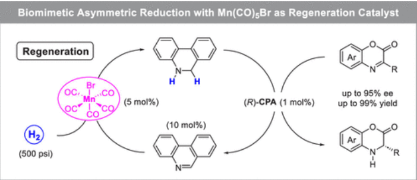 北京大学化学与分子工程学院研究团队在《Organic Letters》上发表了关于五羰基溴化锰(Mn (CO)₅Br)催化的仿生不对称还原反应重要成果。该研究利用五羰基溴化锰作为再生催化剂,结合手性磷酸的协同作用,成功实现了亚胺类化合物的高效不对称还原,为手性胺的合成提供了一条绿色、高选择性的新路径。