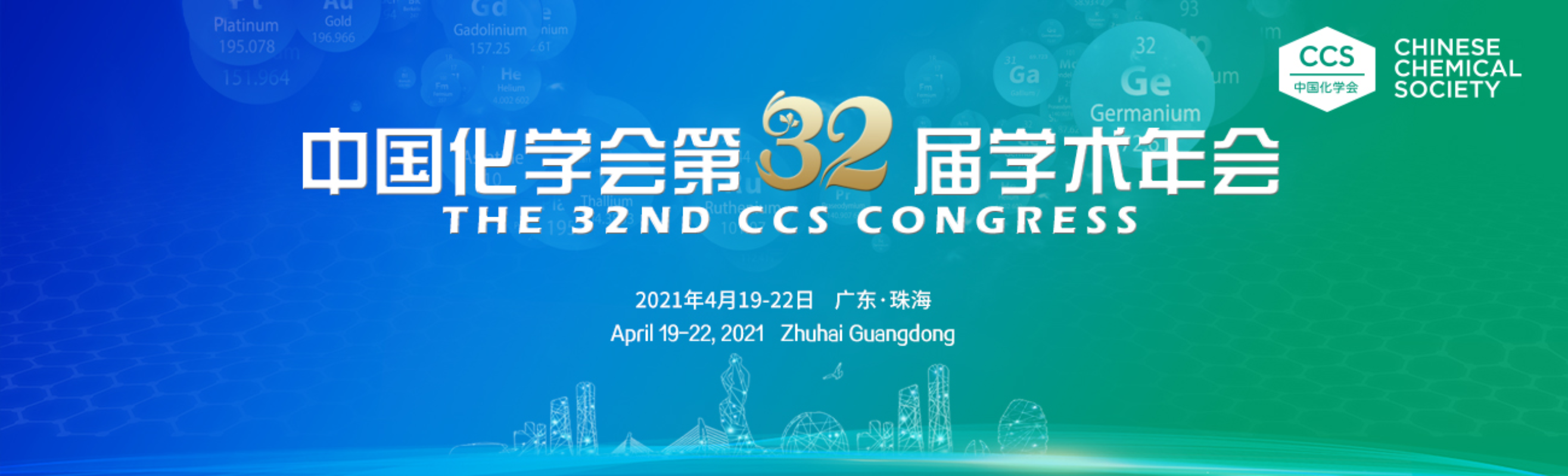 The Chinese Chemical Society (CCS) Congress is held every two years. It provides a comprehensive academic exchange platform with the highest level, largest scale and most extensive influence in the field of chemistry in China. The 32nd CCS Congress will be held at Zhuhai International Convention and Exhibition Center on April 19-22, 2021. This year's conference is planned to set up following 58 academic panels, and theme forums, exhibitions and other activities will be held at the same time. The number of participants is expected to exceed 10,000.