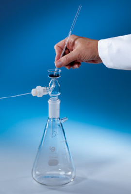 清洗大量核磁管可使用专门的装置,如Wilmad Solvent Jet Cleaners,可同时清洗1~5个核磁管,利用真空瓶和吸气器回收溶剂,可避免手上沾到溶剂。通常需用丙酮进行冲洗,去除管中的有机物。若样品可溶于水或重水,需用蒸馏水进行冲洗。去除管壁表面的水,请详见下文“核磁管除水处理”。