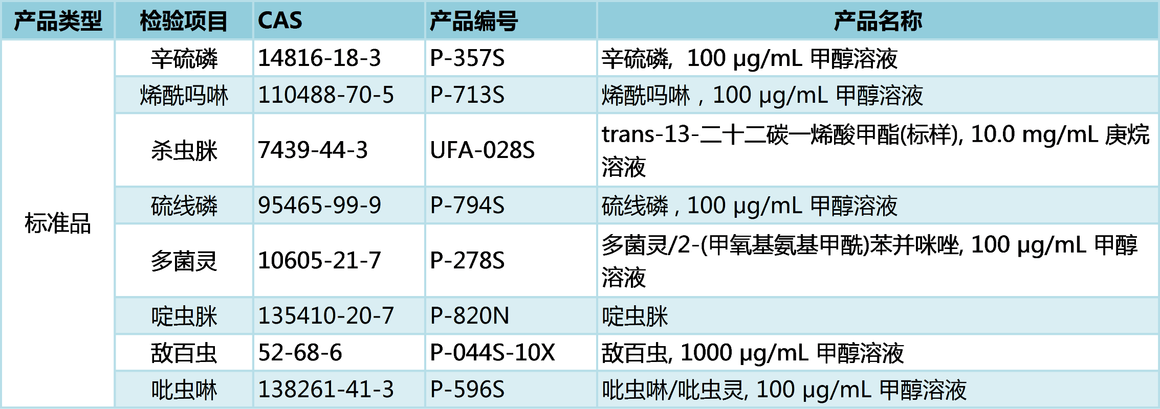 百灵威针对国家食品安全监督抽检实施细则中食用农产品水果类的检测要求,提供标准品、分析检测试剂和耗材,满足分析实验室在扩项、日常检测方面的实验需求。