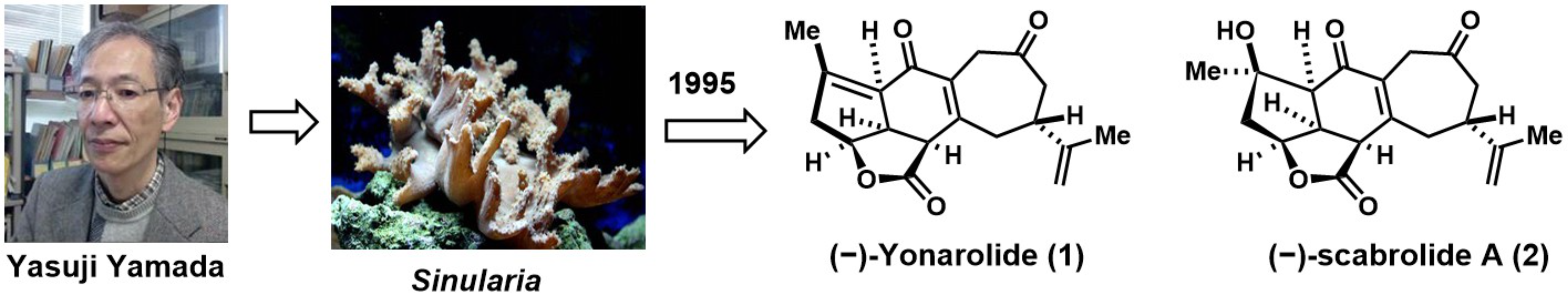 Figure 1 Yonarolide (1)和Scabrolide A (2)的分离发现。 (图片来源于J. Am. Chem. Soc)