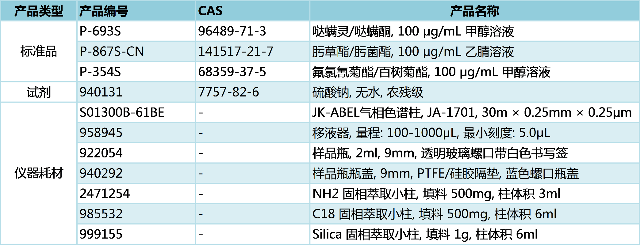 检测项目:哒螨灵,氯氰菊酯和高效氯氰菊酯,肟菌酯