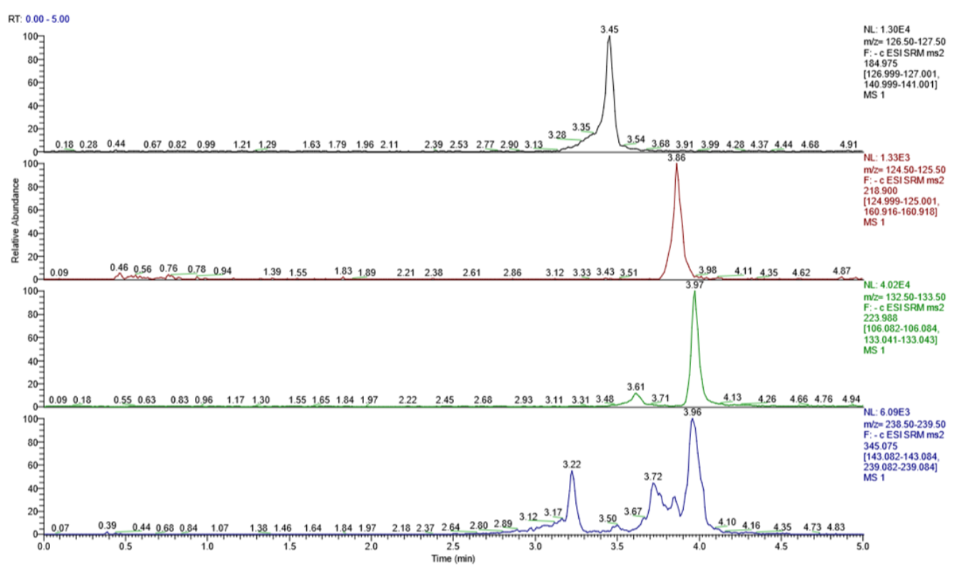 百灵威建立了采用QuEChERS方法进行样品前处理,UPLC/MS/MS 法测定豆芽中4种植物生长素的检测方案。该方法的加标回收率在70-120%之间,RSD小于5%,能够作为豆芽中生长素检测的参考方法。