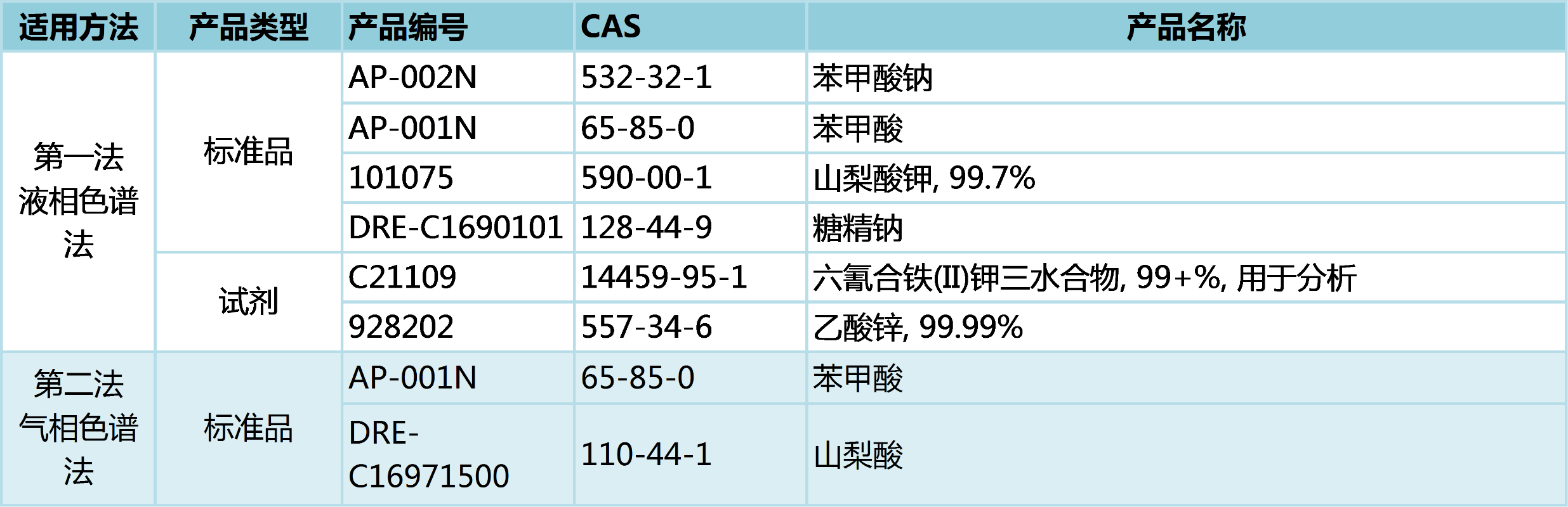 检测项目:苯甲酸及其钠盐(以苯甲酸计)、山梨酸及其钾盐(以山梨酸计)、糖精钠(以糖精计)