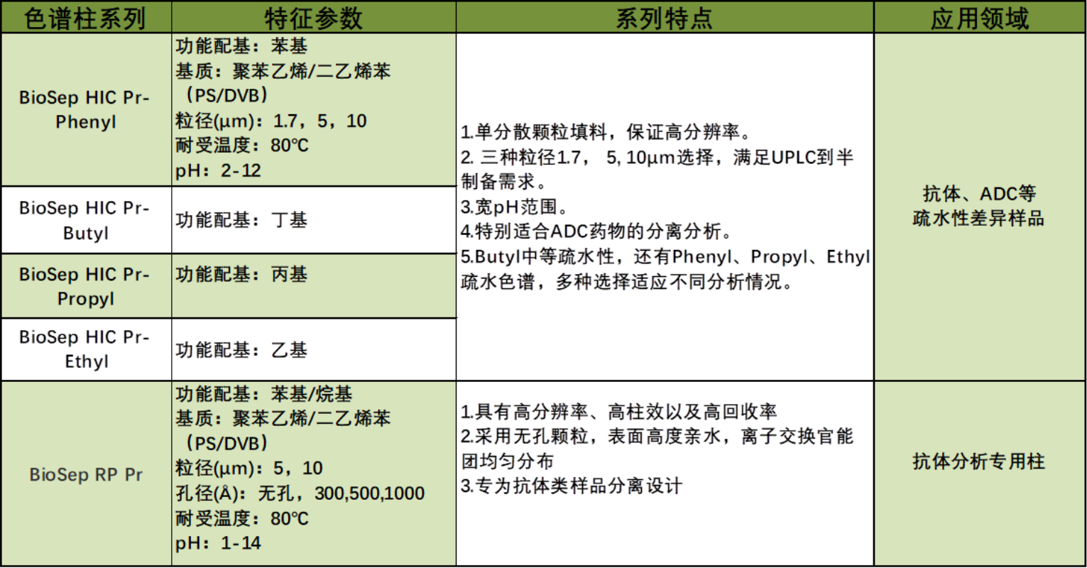 疏水/疏水反相作用色谱柱特别适合单抗及抗体偶联药物(ADC)的分离分析。
