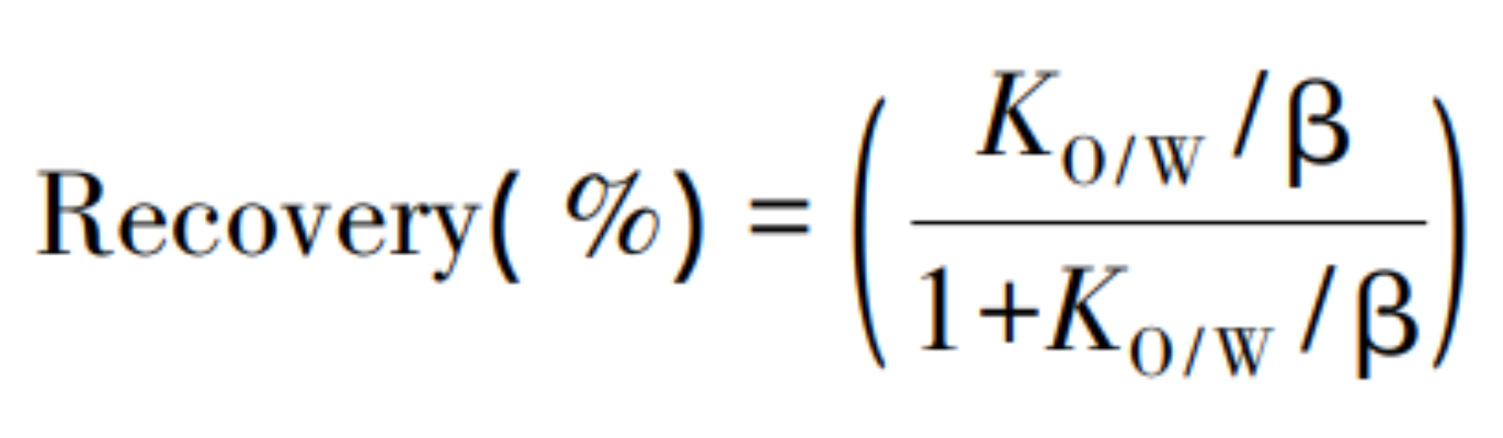理论萃取率可以用以下的公式进行计算:其中β是水相样品体积与萃取相体积的比值。