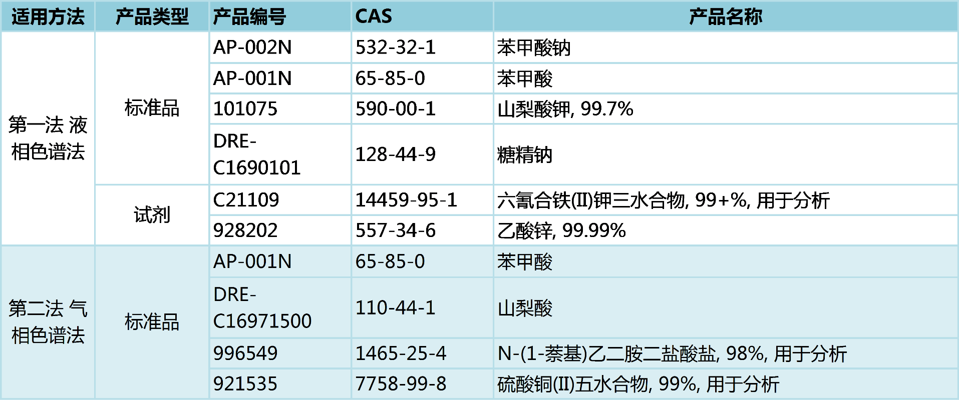 检测项目:糖精钠(以糖精计),苯甲酸及其钠盐(以苯甲酸计),山梨酸及其钾盐(以山梨酸计)