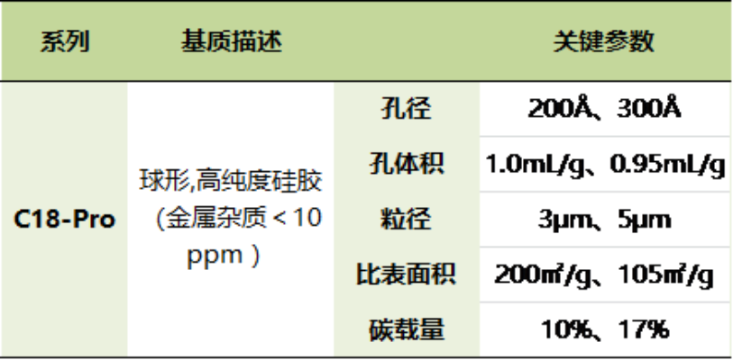 百灵威C18-Pro系列反相色谱柱具有大孔径,可用纯水作为流动相,其特殊化学键合技术形成单层ODS,在纯水溶液中不会崩解。