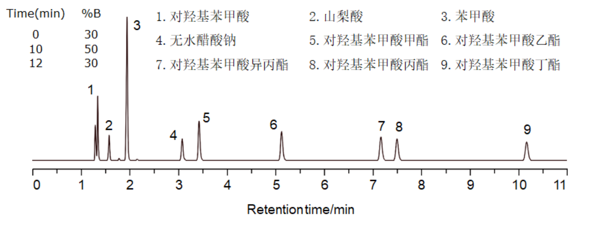 防腐剂对于食品具有保鲜防腐的作用。我国常用的防腐剂包括酸型防腐剂(苯甲酸、丙酸等)、非酸型防腐剂(对羟基苯甲酸乙酯及其钠盐)、生物防腐剂(乳酸链球菌素)等。防腐剂使用不当会有一定的副作用,食品中防腐剂含量的精准测定十分重要。