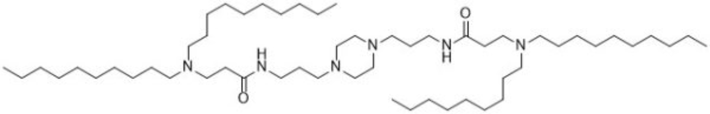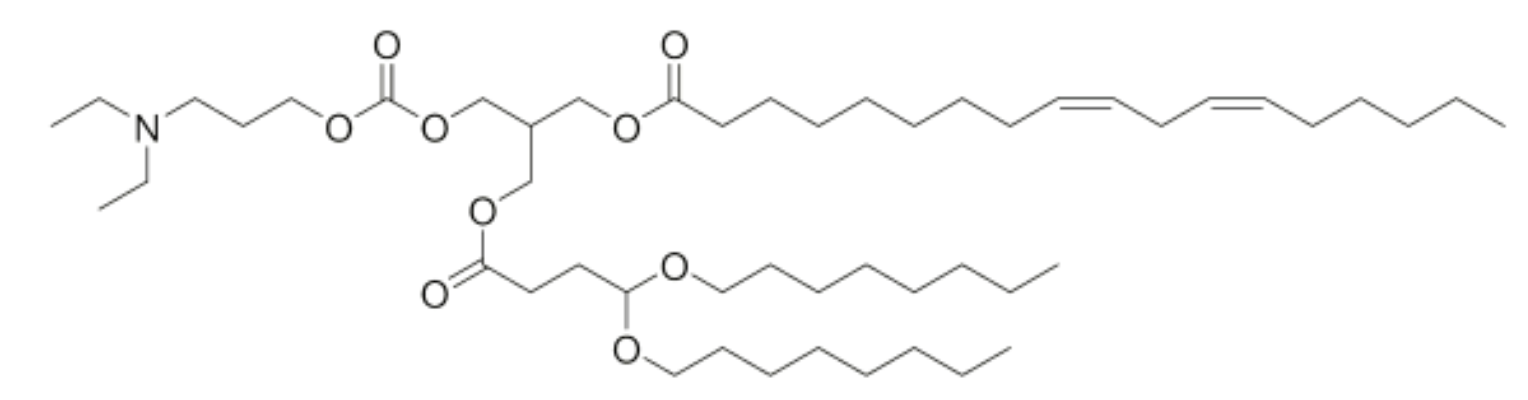 LP-01是可离子化的阳离子脂质,并且具有与11-A-M(Echelon Cat#:N-1111)类似的结构。LP-01可以与胆固醇、DSPC和PEG2k DMG形成脂质纳米颗粒(LNP)。LNP核酸组装体可以在T细胞中递送靶向MHC II类反式激活剂(CIITA)的单引导RNA(sgRNA)。