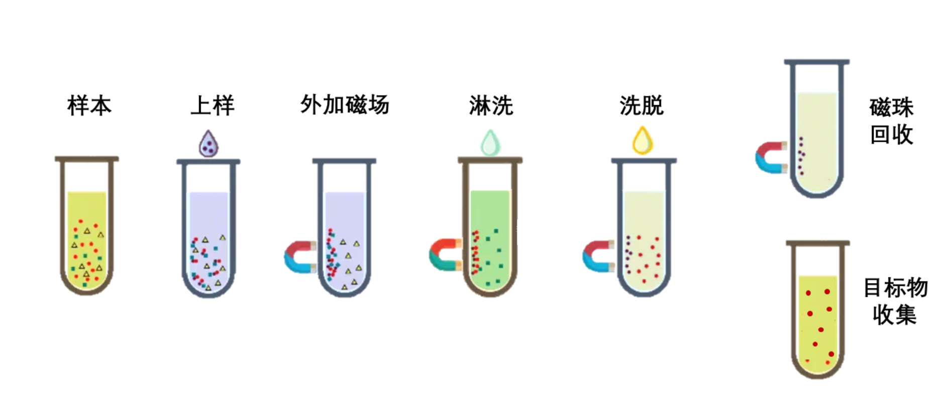 磁性固相萃取(Magnetic Solid Phase Extraction,MSPE)是一种集采样、富集和前处理于一体的环境友好型样品预处理技术。MSPE能够克服传统固相萃取小柱在样品处理过程中易堵塞和操作繁琐等问题,利用磁性材料或磁性纳米材料作为吸附剂,通过外部磁场的作用,实现对目标分析物的快速、高效富集和分离。
