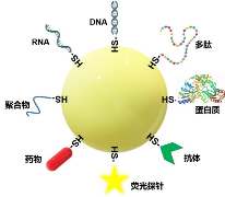 a. 易连接:易形成Au-S键,可方便地与各类抗原/抗体、蛋白、寡核苷酸、药物、聚合物等连接,进行靶向递送(图1)。