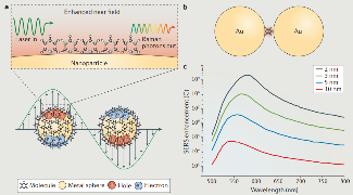 b. 较强的信号增强效应:胶体金具有典型的局域表面等离子体共振效应,在特定波长入射光照下,特定部位会产生强烈的电磁场,能有效提高分子的拉曼信号,从而具有较强的信号增强效应(图2)。