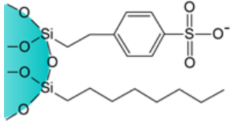 C8/SCX的官能团由按比例键合的辛基和磺酸基组成,辛基提供中等疏水作用,磺酸基提供强阳离子交换作用。