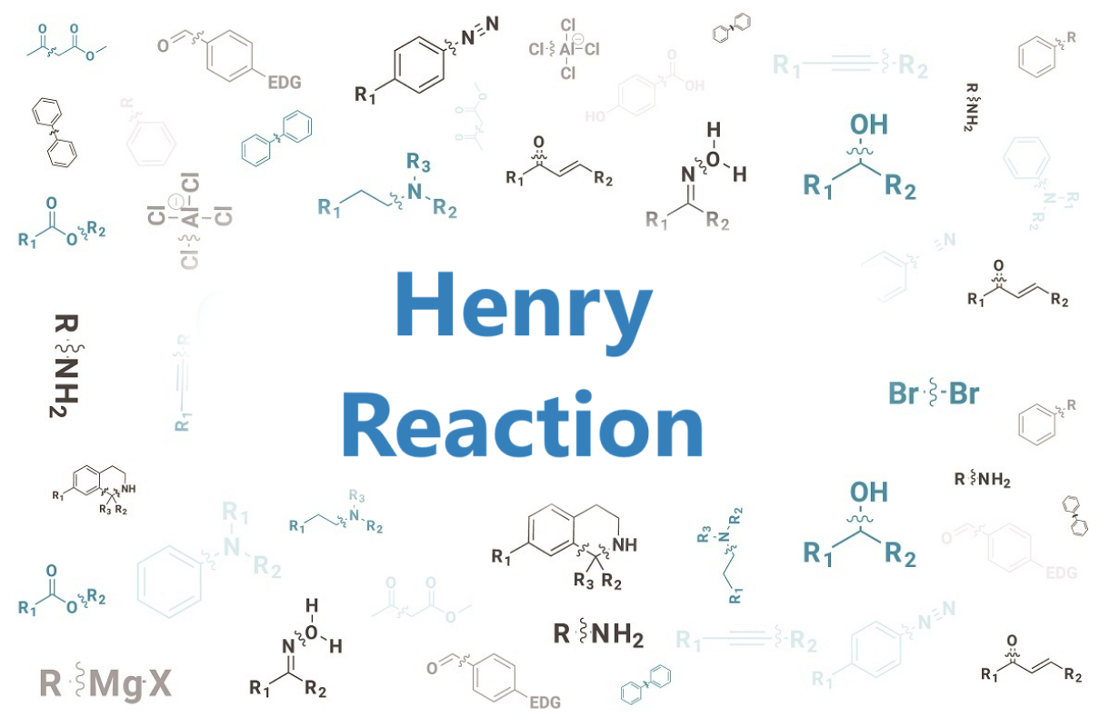 Henry 反应也被称为硝基醇醛缩合反应是指含有α-氢的硝基化合物与醛或酮在碱的存在下发生亲核加成,生成β-硝基醇(邻硝基醇)的反应。该反应由比利时化学家 Louis Henry 于1895年发现,并以他的名字命名。硝基化合物在碱性条件下与醛或酮发生缩合,生成β-硝基醇的反应。